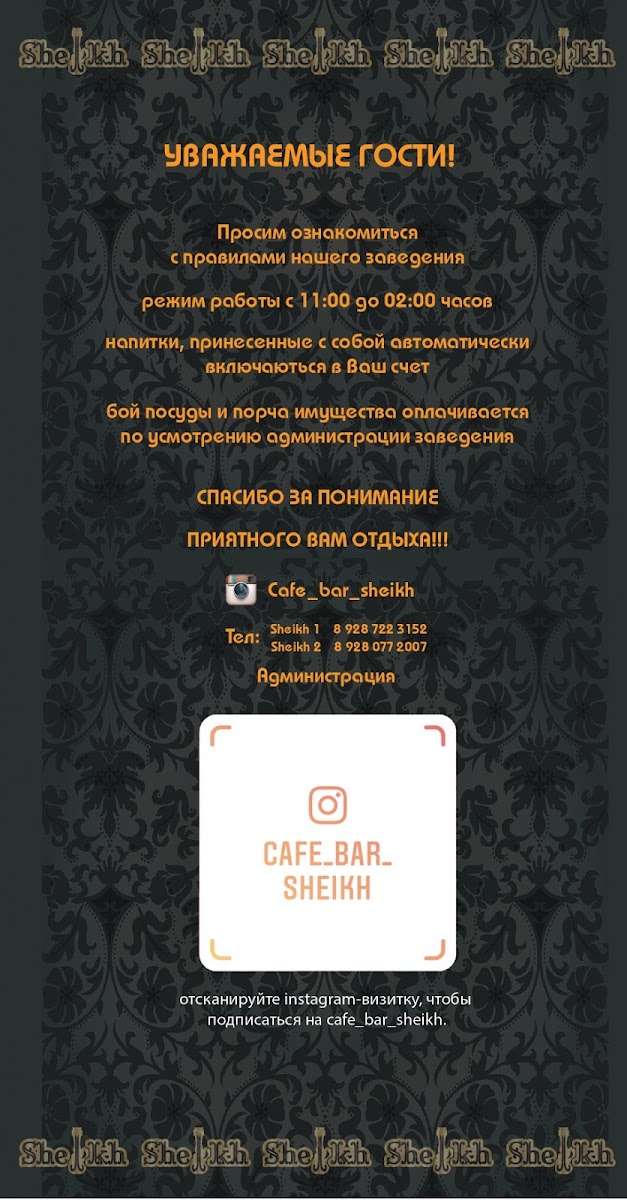 Welcome to Cafe Bar Sheikh, a hidden gem tucked away on Ulitsa Keshokova in the heart of Nalchik, Kabardino-Balkarian Republic. This vibrant café is more than just a place to enjoy a meal or a smoke; it’s an experience that delights the senses and fosters connections.